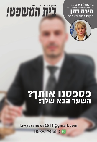 גיליון 104דצמבר2019בית המשפט° במשאל השבוע: מי הם השופטים האהודים ביותרמירה דהן מקום גבוה בצמרת הפשסערפ הסבנוא שאולך!תך? lawyersnews2019@gmail.com 053-7795553