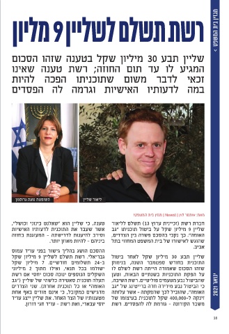 רשת תשלם לשליין 9מליון מגזין בית המשפט >